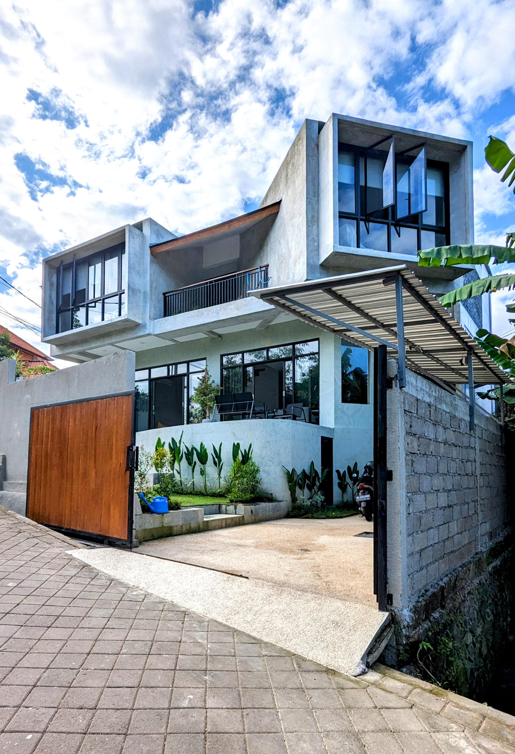 - Corridor to metal staircase for access to maid / laundry area or level 1Exterior:
